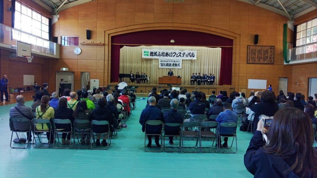 小・中学生から募集した「防犯・防災キャッチフレーズ」の表彰や中山中学校吹奏楽部による演奏、最後は『みのりさん』演奏で、参加者全員が声を合わせ懐かしい童謡を歌いました。2時間にわたるフェスティバルでしたが、とても暖かく楽しい地域の輪を感じるイベントとなりました。今年より来年・・・と地域の輪が広がっていければうれしいですね。